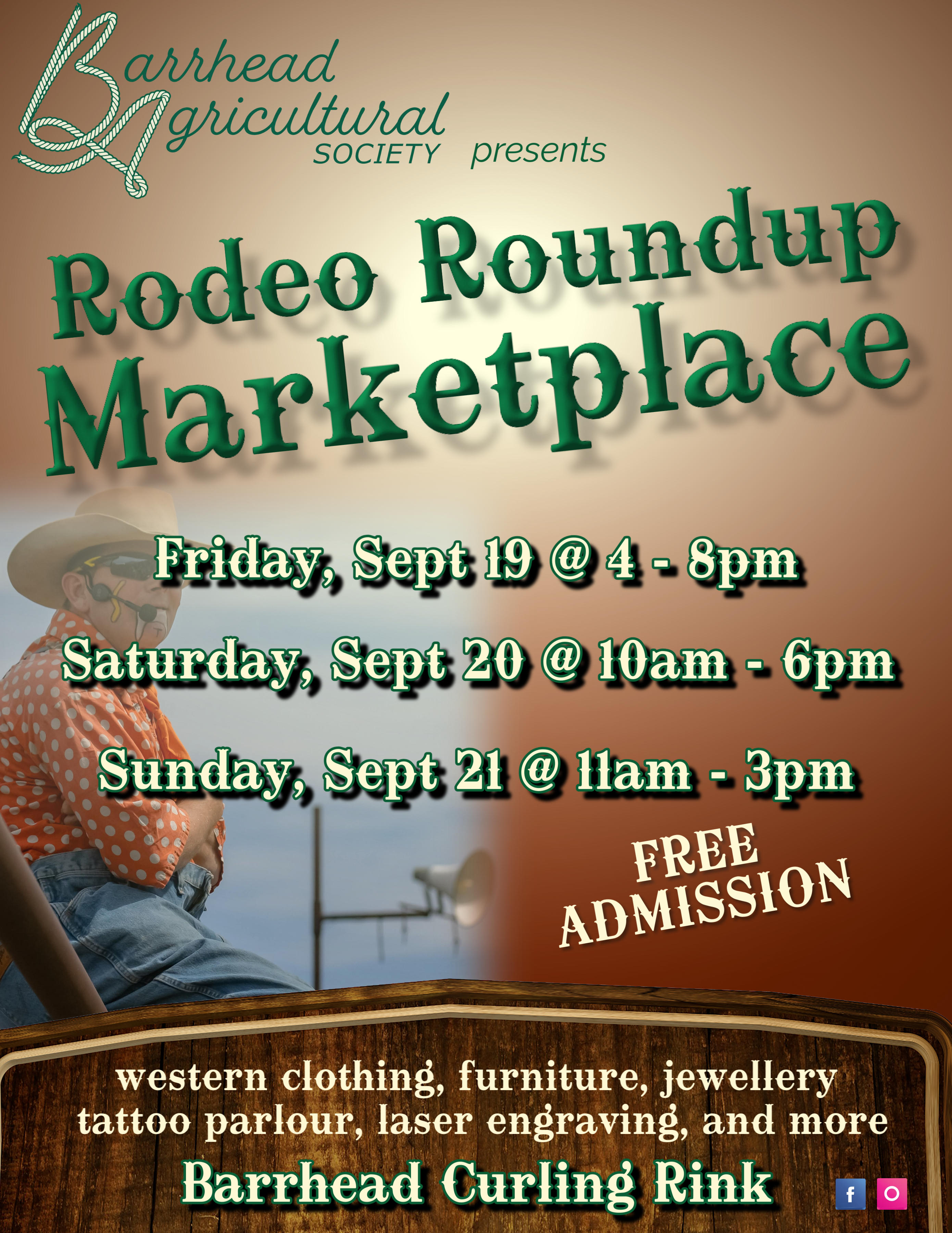 11:00am to 3:00pm - Rodeo Roundup Marketplace at the Barrhead Curling Rink (FREE admission)